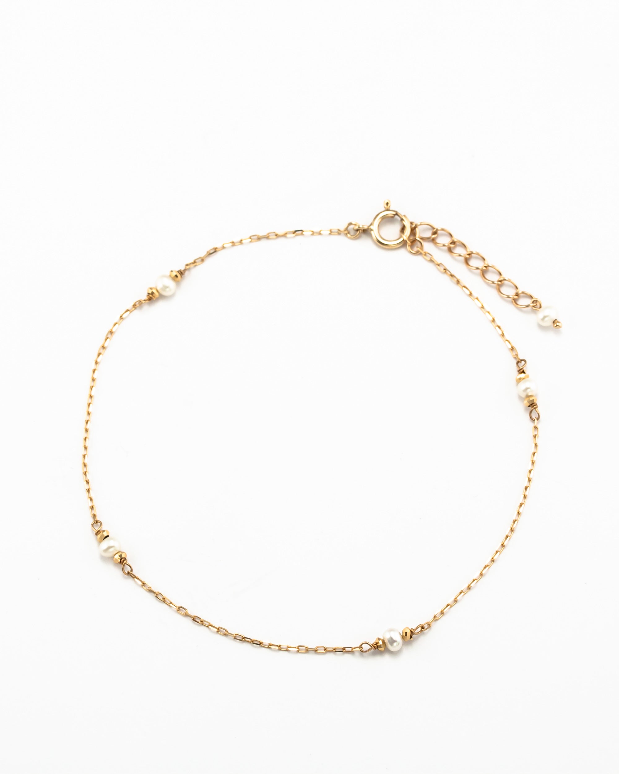 温かみのある柔らかなテクスチャーのベビーパールとイエローゴールドのビーズが華やかにきらめき、エレガントな印象に。